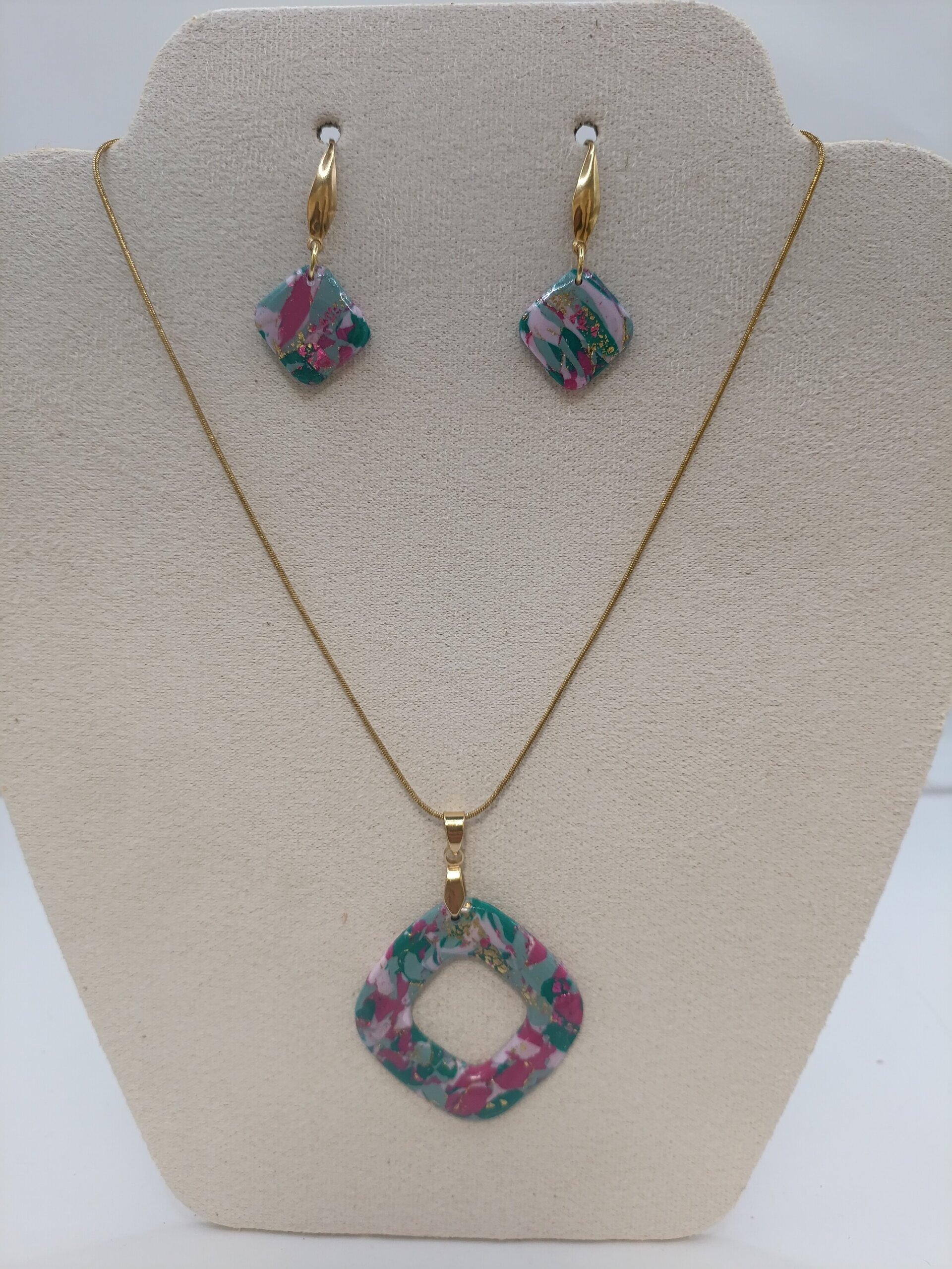 Conjunto Pendientes y colgante arcilla polimerica Estrella negra
